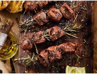 Cвинoй шашлык, куриные крылья, картофель по-дереве...